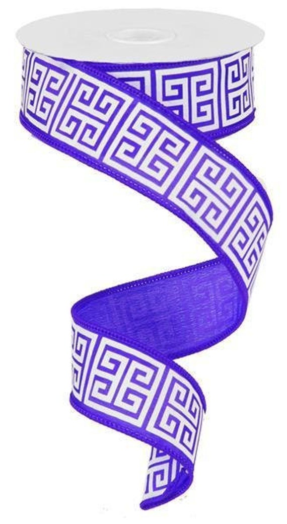 33 Yards Wired Ribbon By The Roll Purple And White Greek Key Etsy